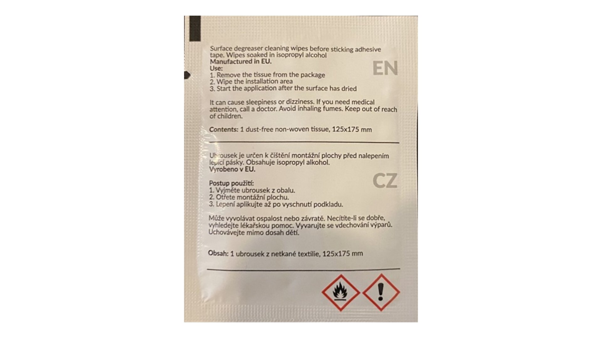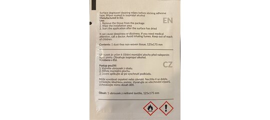 Čistiaca utierka s izoprophylalkoholom na odmastenie hliníkových častí krytiek a parapetov 125x175mm