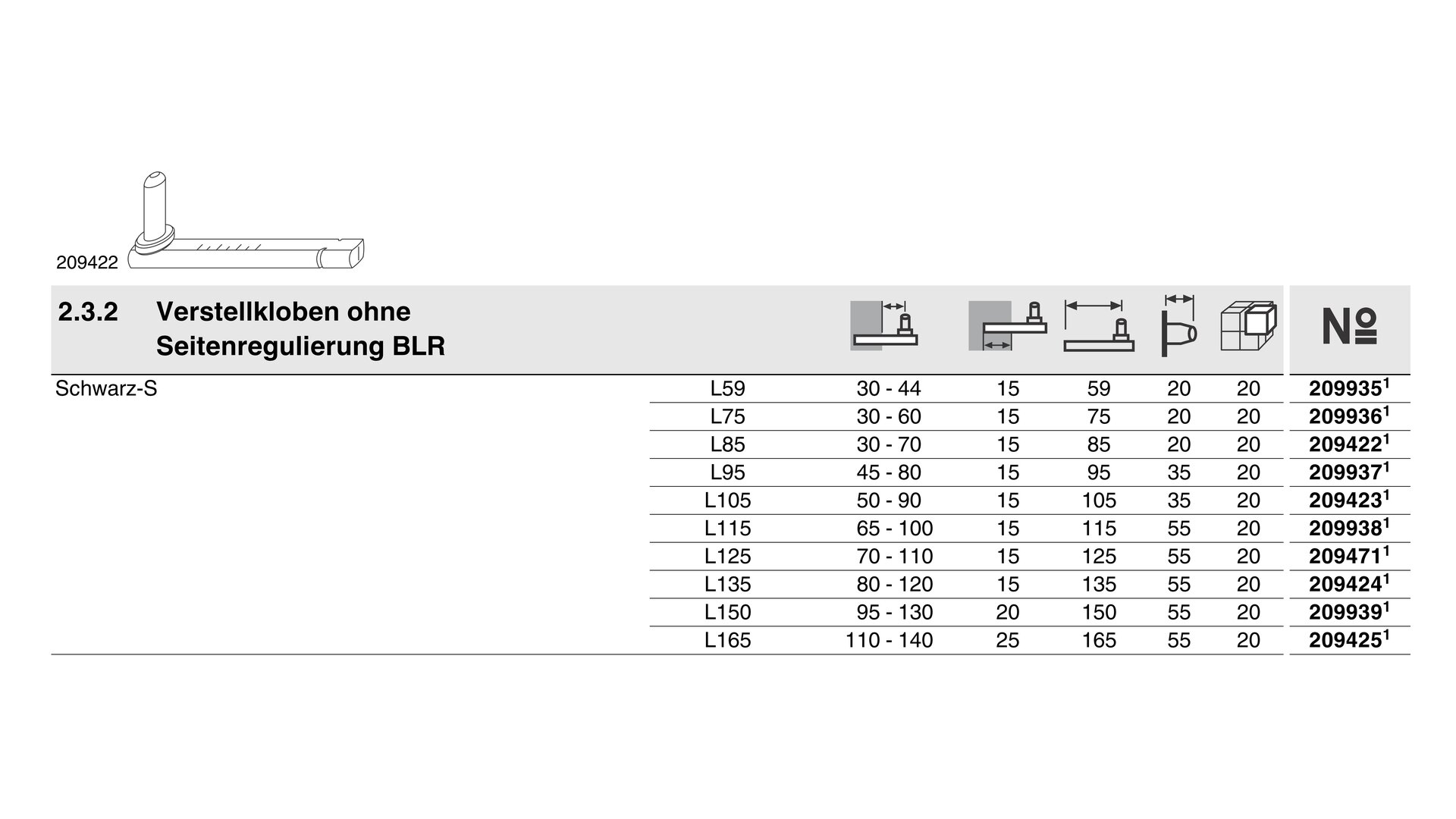 Nastaviteľný záves SK15 BLR L135 (Gr.2) bez bočnej regulácie farb.čierna-S MACO