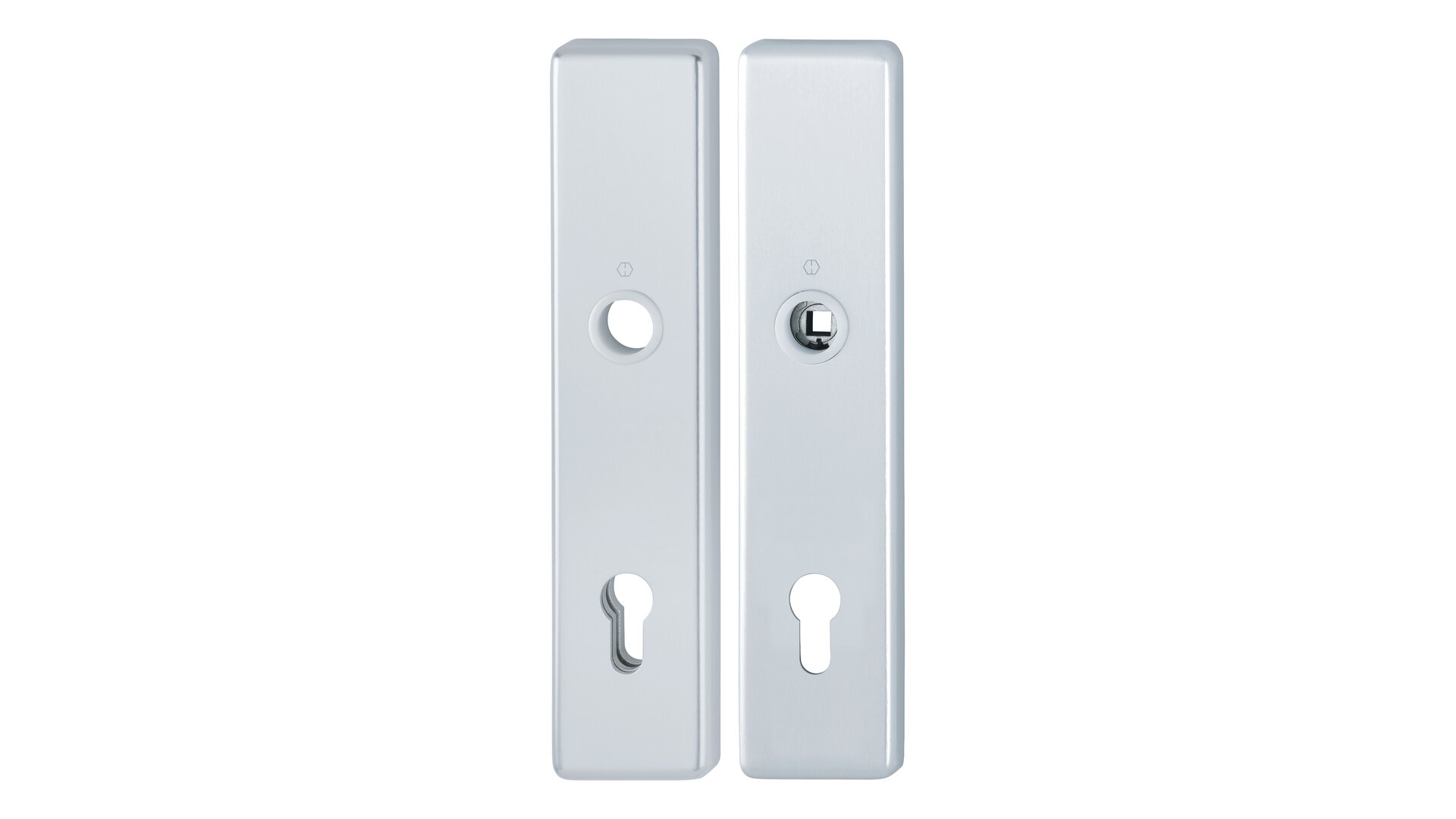 Pár hranatého štítku 2221/2210 (pre kľučka/kľučka), 8/92mm SK3/SST/vratné pero, 67-77mm, striebor. HOPPE