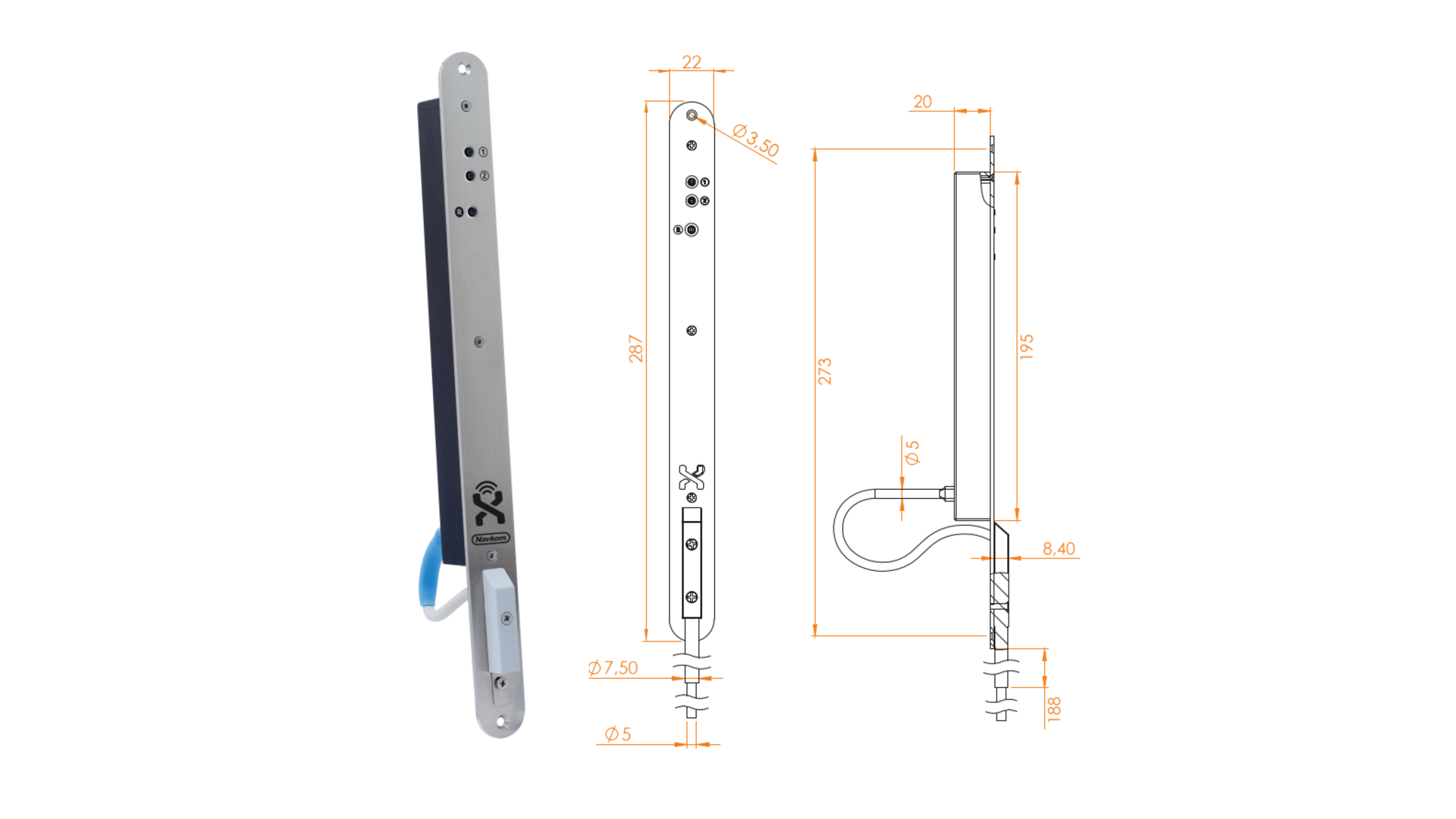 Řídící jednotka R7-CU-103 vč. rozpojitelné kabelové přechodky zakulacená 22x287mm NAVKOM