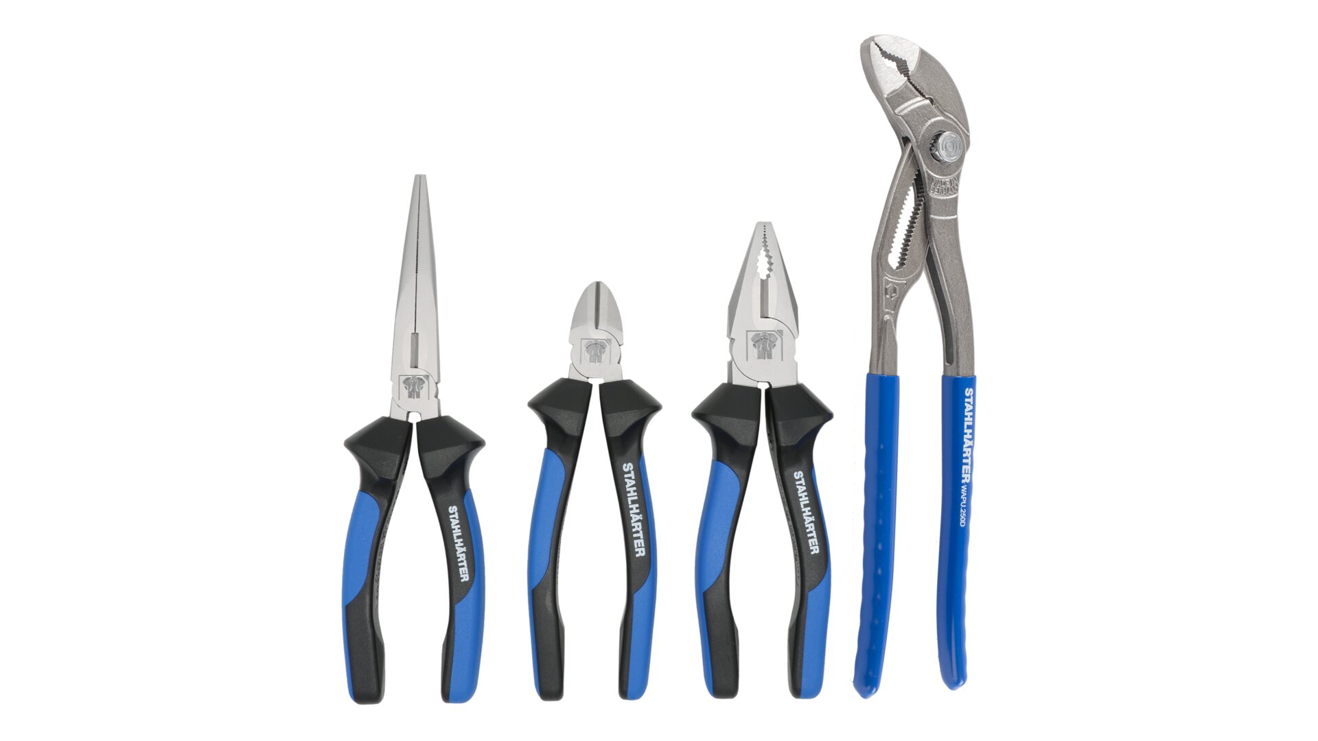 STAHLHÄRTER sada kleští; 4 ks (kombinované, štípací, rádiové, instalatérské speed)
