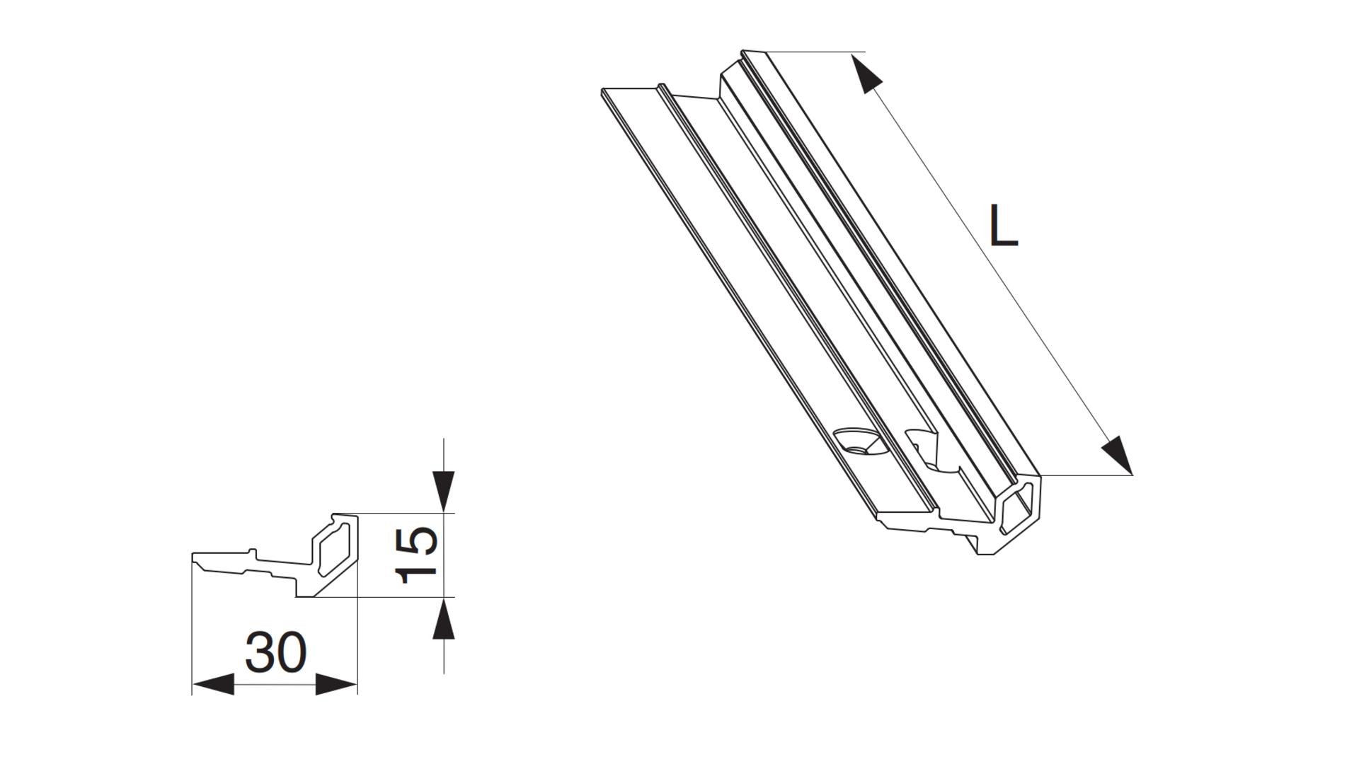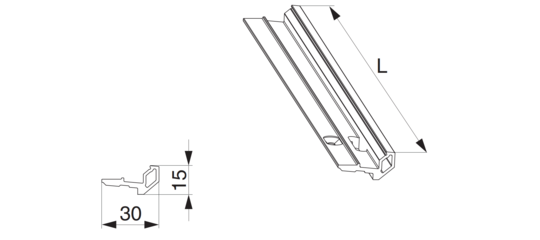 Zasklívací ALU montážní lišta pro bezrámové zasklení fixního skla, L=2500mm, striebor. MACO